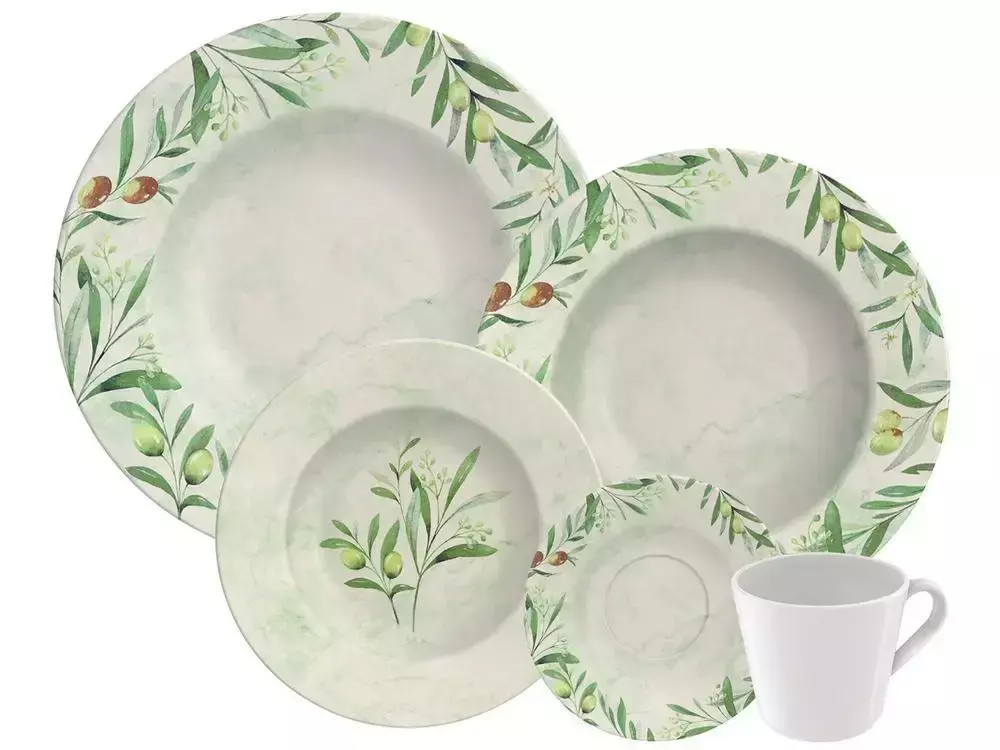 Para compor a mesa para aquele jantar especial com a família e os amigos, o Aparelho de Jantar Tramontina Oliva 20 Peças é indispensável. Com peças desenvolvidas em porcelana decorada tradicional e exclusiva Tramontina, ele é um jogo translúcido e de excelente brancura, que garante alta resistência mecânica e porosidade próxima de zero, que evita a proliferação de fungos e bactérias. Escolha as porcelanas Tramontina e encante seus convidados com suas receitas e com a decoração da sua mesa!