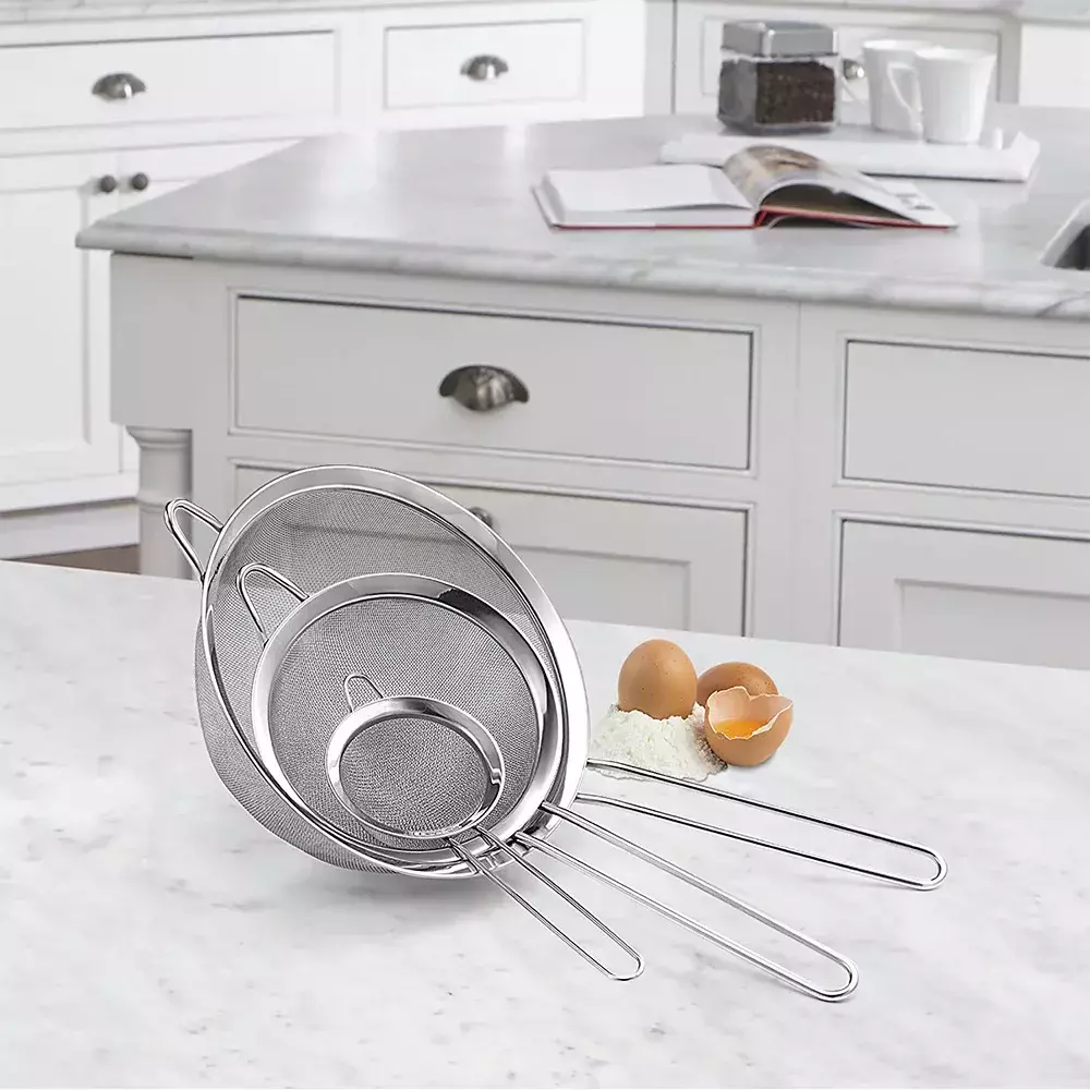 Aço inoxidável Filtro De Malha Fina Peneira De Farinha Para Cozimento Com Alça Peneira De Farinha Peneira De Farinha Acessórios De Cozimento 0859 |