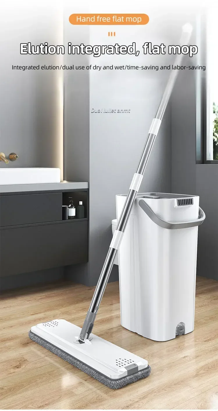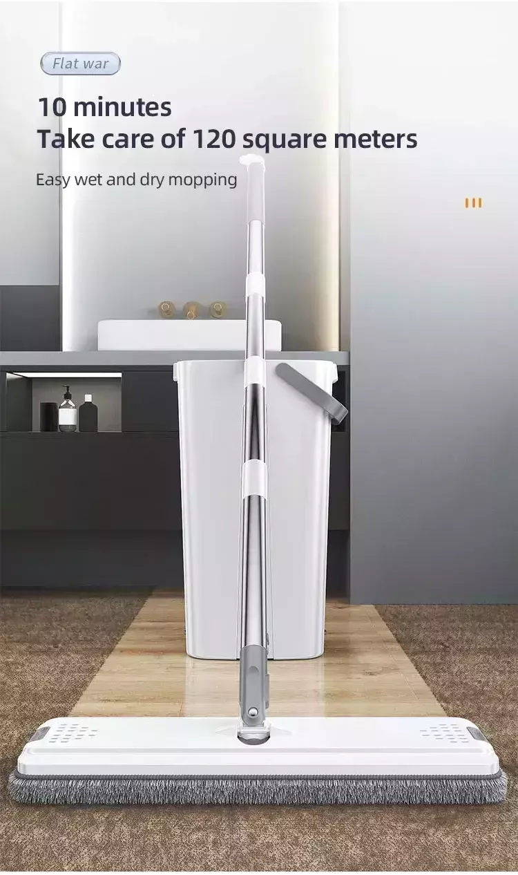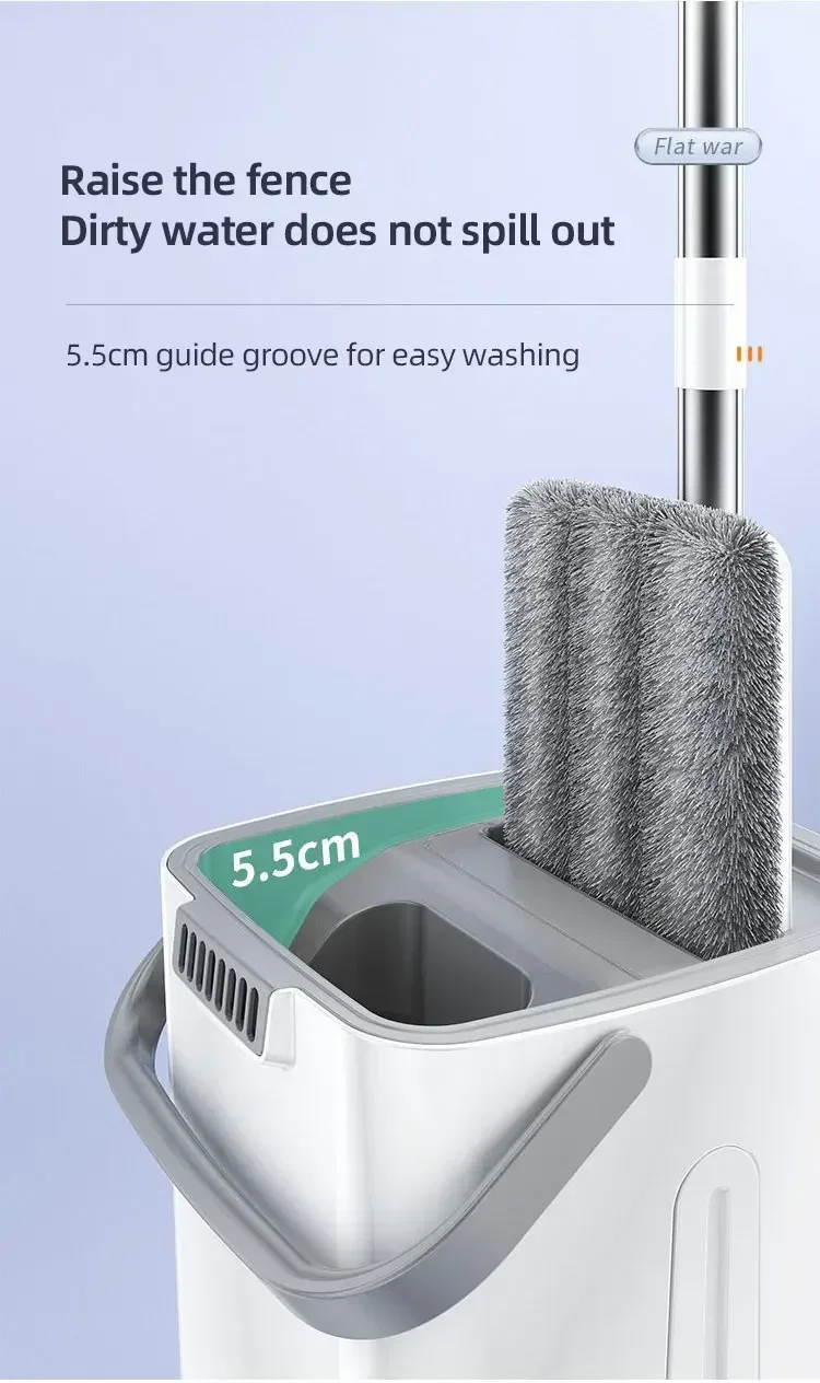 Fácil drenagem e garrafa de detergente-Você pode levantar a alça de torção para derramar água ou retirar o plugue para drenar a água suja. Adicione o detergente na garrafa de lavagem portátil como você gosta, que é conveniente para a limpeza do esfregão.