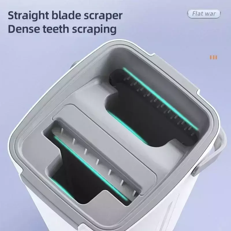 2-in-1 Self Wringing Bucket-O balde duas câmaras separadas, uma para lavar, o outro para a secagem. O raspador embutido pode espremer água redundante para fora do esfregão para controlar a umidade. Com este balde portátil, não há necessidade de voltar para a torneira para limpar o esfregão mais.