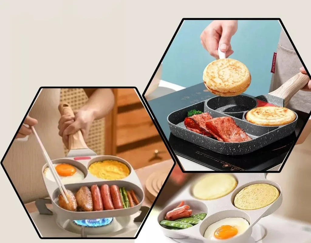 A frigideira antiaderente é compatível com todos os tipos de fogões, desde a gás até indução. Aquecendo uniformemente, a textura externa evita efetivamente que os alimentos superaqueçam e queimem.