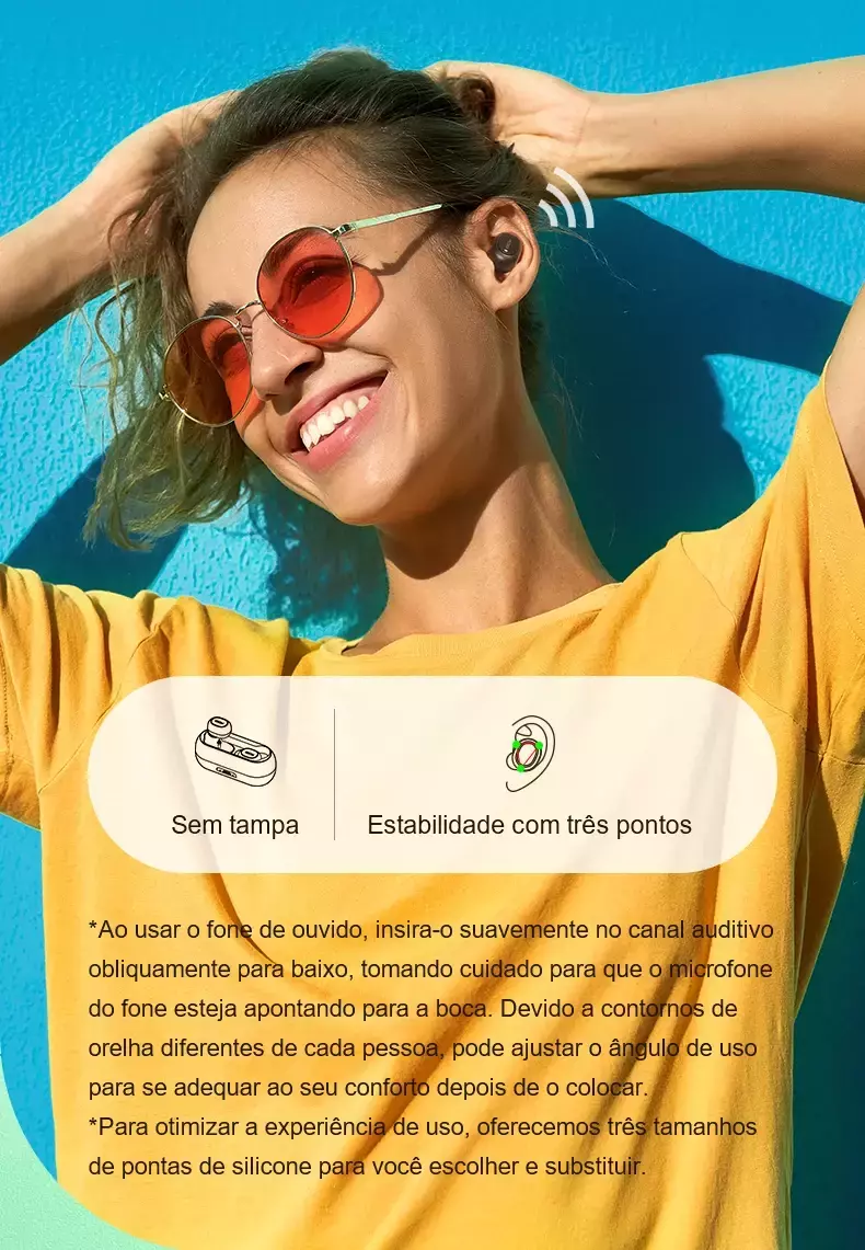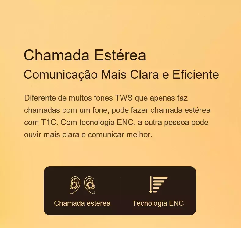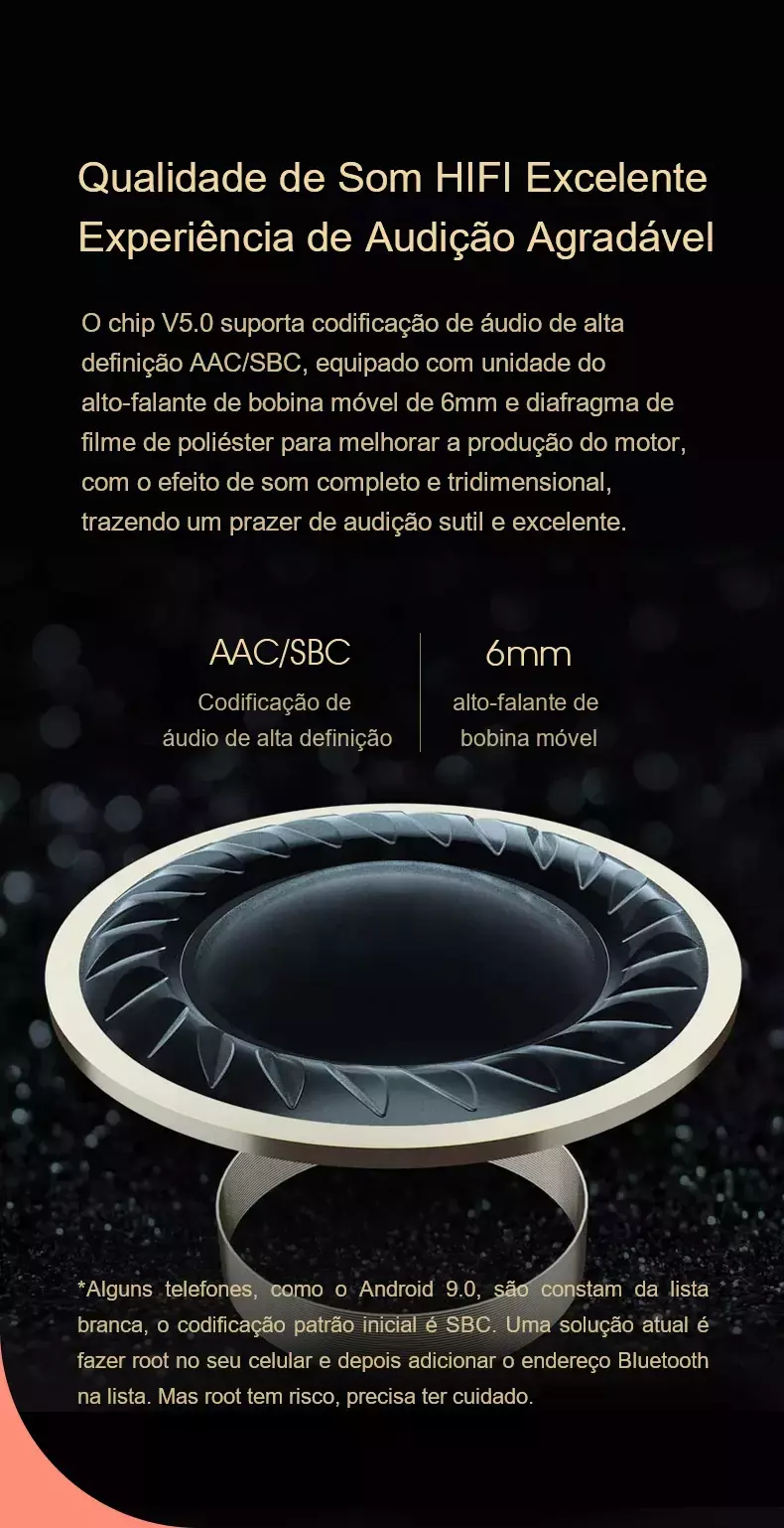 Com a tecnologia ENC, a outra parte também pode ouvir sua chamada com clareza. Som estéreo HD, codecs de áudio AAC/SBC HD, vários modos que atendem a diferentes necessidades. Desfrute de chamadas, entretenimento de áudio e vídeo e jogos.