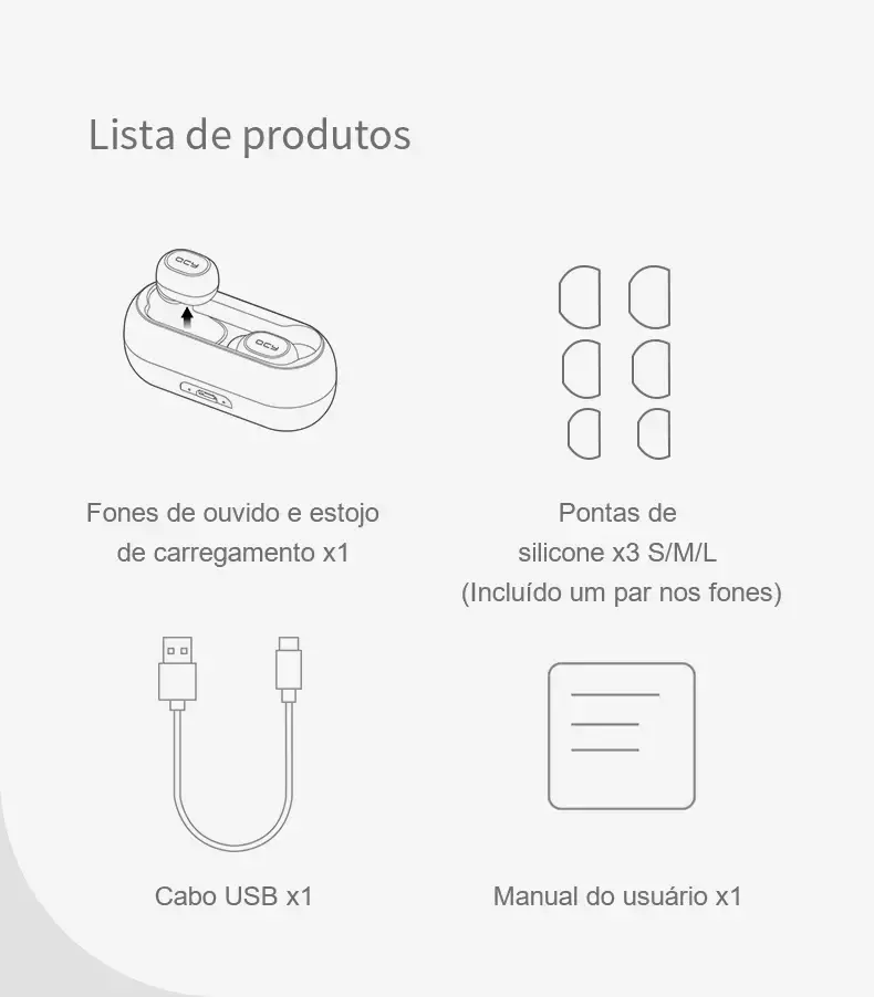 Oferecemos três opções de pontas de ouvido para o seu melhor uso.