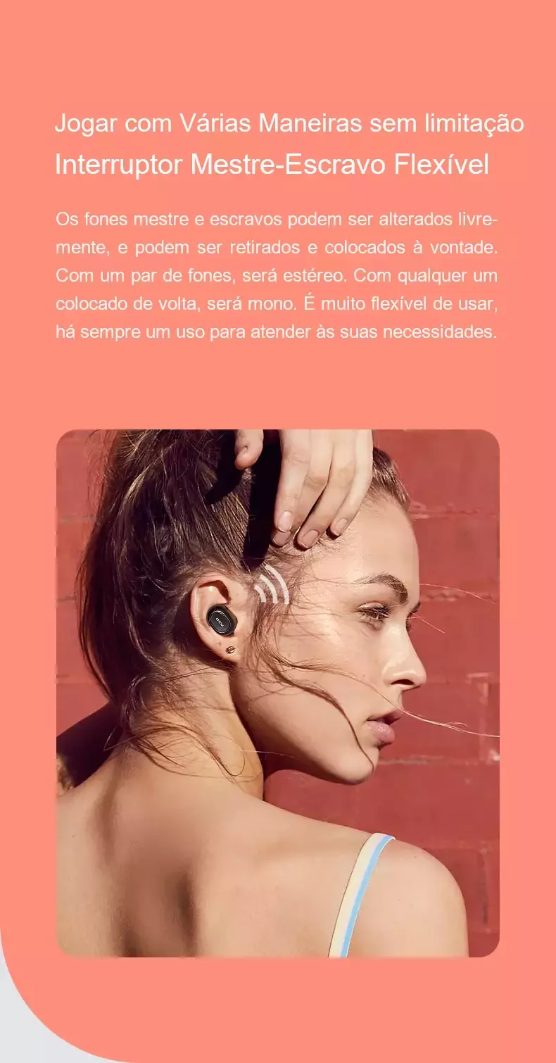 Modo mono/estéreo disponível, graças ao interruptor mestre-escravo sem costura, pegue os dois fones de ouvido para tocar no modo estéreo enquanto empurra para entrar no modo mono. Além disso, você pode usar o modo mono com dispositivos diferentes, o que faz com que você tenha dois fones de ouvido independentes.
