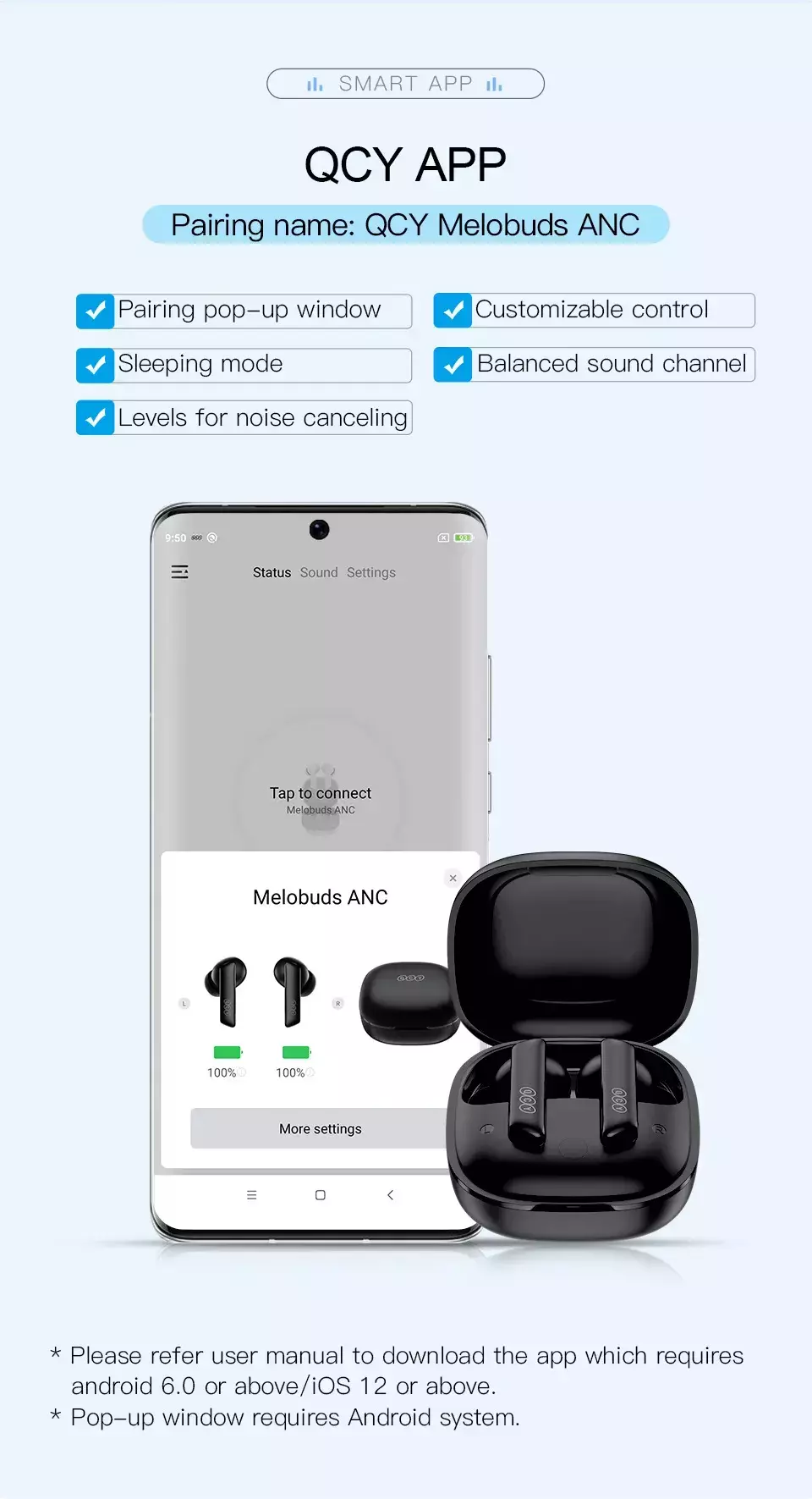 [Suporte QCY APP, Touch Control, Voice assistente, Sleep Mode, Game Mode]