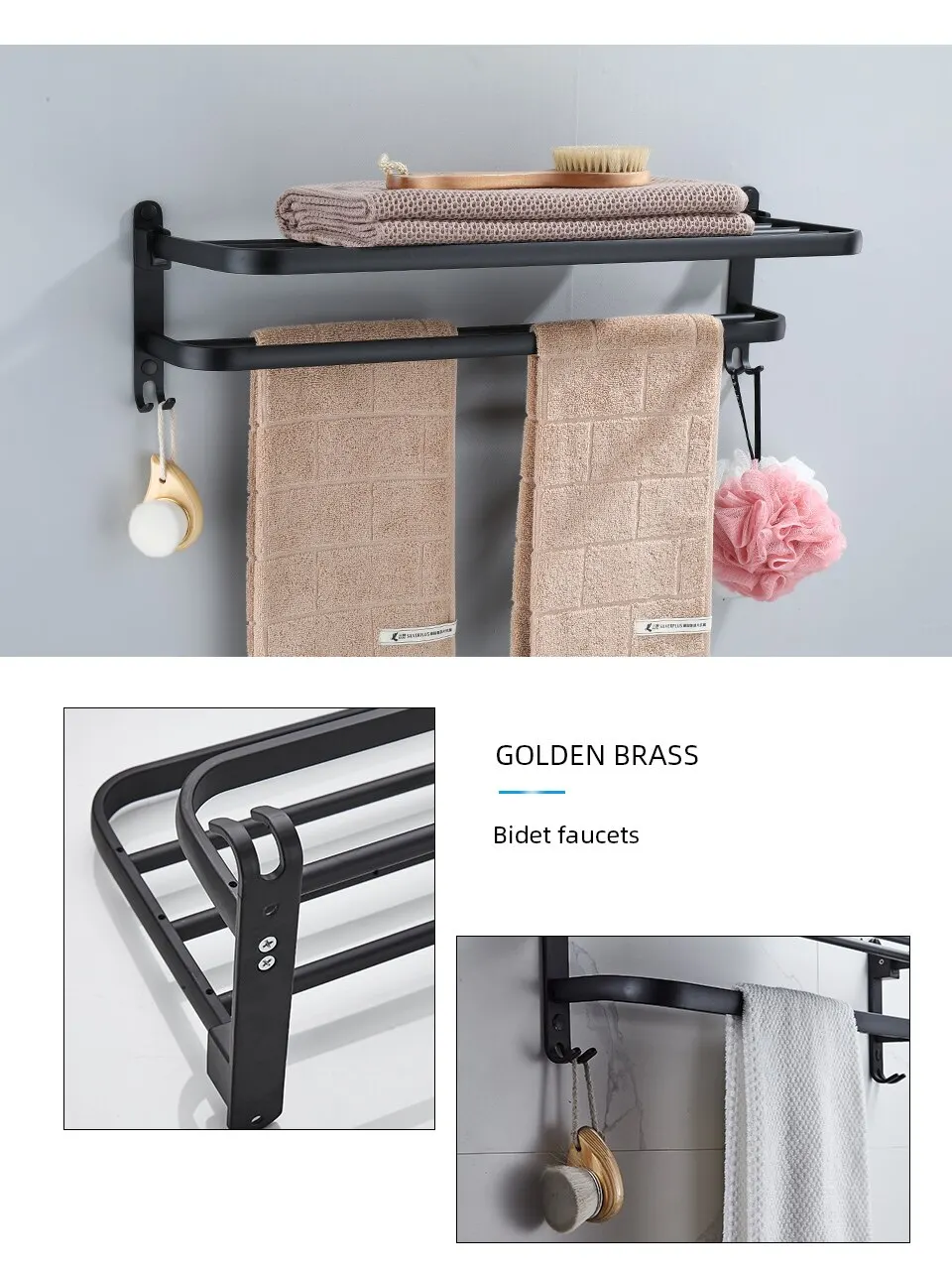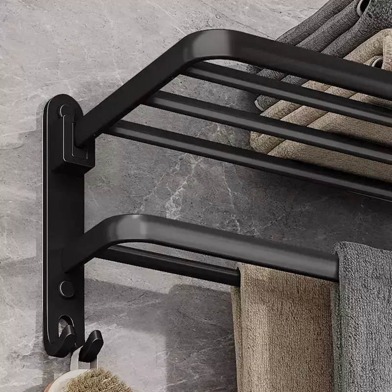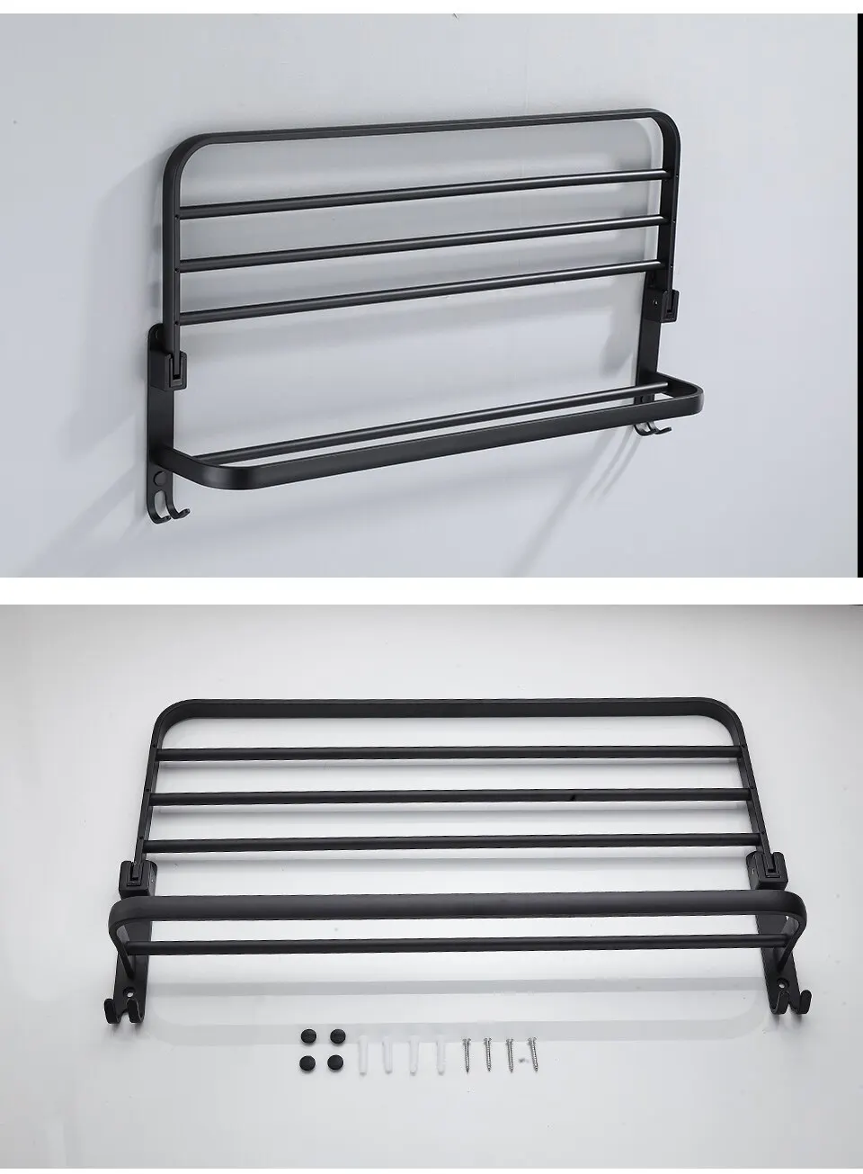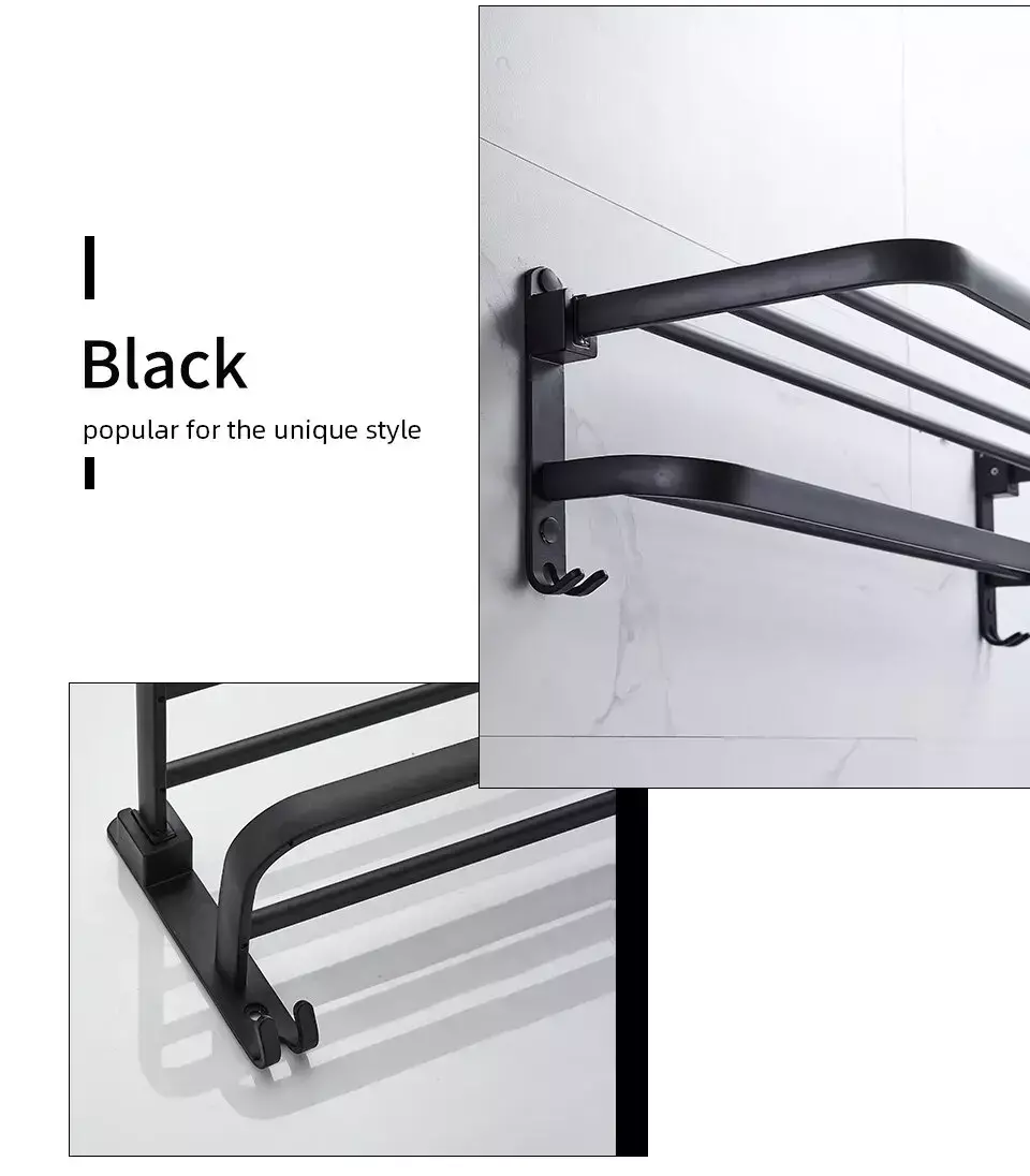 • Montagem na parede :O recurso de montagem na parede permite que você prenda o suporte a qualquer parede, tornando-o um local conveniente para secar suas toalhas.